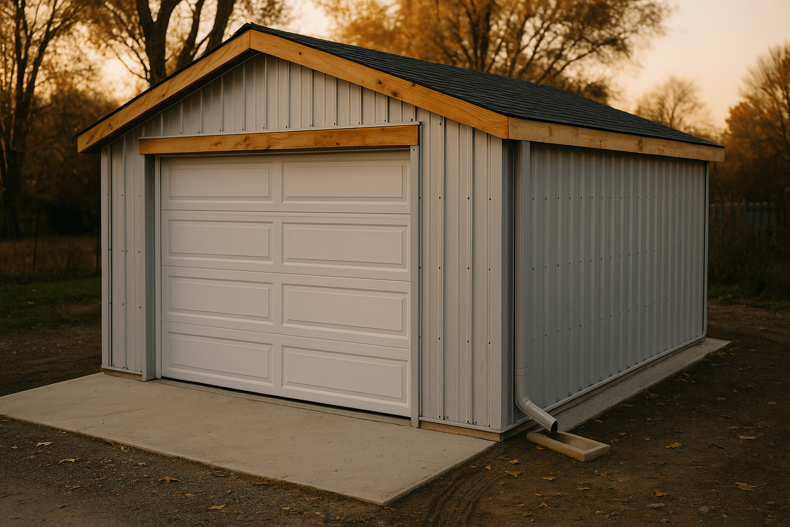 Doors and accessories can be a quiet swing factor in your budget. A standard insulated overhead door and opener might add $800–$1,800 per bay. Windows, gutters, and ventilation components are smaller line items individually but add up. If you expect heavy storage, include shelving, loft framing, or ceiling‑mounted racks. Many owners also budget for exterior paving or gravel aprons to avoid tracking mud inside and to keep groundwater away from the slab.